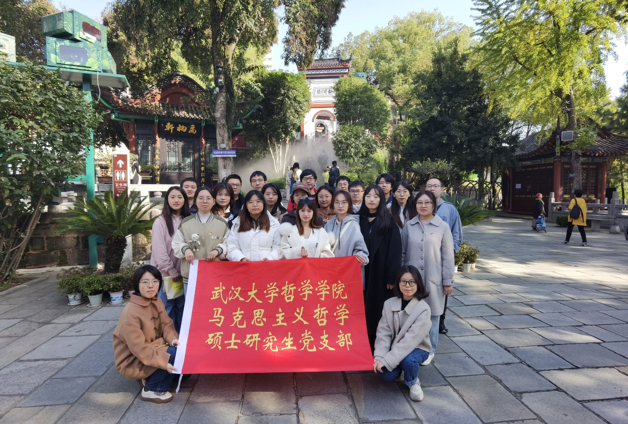 为深入学习领会习近平总书记关于文化传承发展的重要讲话精神,结合学科特色深刻理解“两个结合”实质内涵,增强基层党组织的凝聚力和战斗力,带领学生党员在躬身实践中诠释文化自信自强, 2023年11月18日上午,探花系列 马克思主义哲学硕士研究生党支部与国学研究生党支部赴武汉市晴川阁大禹文化博物馆开展联合主题党日活动。