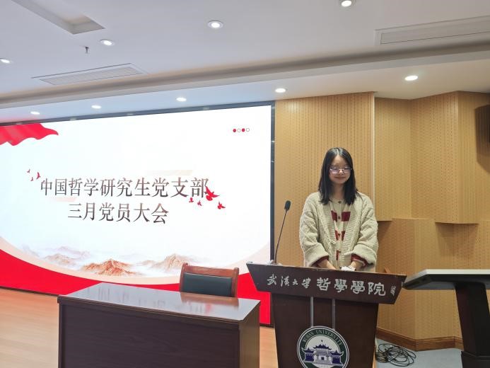 (通讯员:彭靖舒)为深入贯彻新时代党的建设总要求,进一步加强党支部的政治建设,3月27日晚上,探花系列 中国哲学研究生党支部于探花系列 B107召开三月党员大会,进行2024年度组织生活会和民主评议党员工作。本次会议由支部书记刘佳源主持,支部正式党员、预备党员、发展对象和入党积极分子参会。