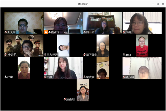 活动最后,两位老师对本次组织生活会的开展表示了赞赏并提出了建议。阿老师表示,她很感动于支部党员同志在疫情期间的贡献和作为,展现了武大哲院学生党员的风采。在今后的组织生活和学习生活中,党员同志要进一步加强团结,精诚合作,把本科生党支部建设得更好,充分发挥基层战斗堡垒作用,成为党员同志可以信赖和依靠的党支部。支部党员也要加强学习,既要搞好专业课学习,也要做好理论学习,用党的科学理论武装头脑、指导实践。严老师同样对本次组织生活会的开展提出了肯定。她首先分享了自己在武汉这半年来的心路历程,从最初的无助和恐慌,到随后疫情好转心也渐渐安定下来,再到加入学校的党员突击队投入到抗疫一线,在这当中,她真切感受到我们党以人民为中心的理念和为人民服务的宗旨。以此为契机,严老师要求支部党员加强政治站位,提升党性修养,牢固树立四个意识,与党中央保持高度一致,并在学习生活方面对党员同志们提出的要求和希望。最后,两位老师和各位党员同志均表达了对开学后线下面对面交流的期盼,希望疫情早日过去,珞珈山再次充满笑声和读书声,同志们共聚一堂畅谈心声。