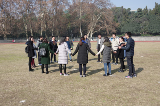 上午10:30,学员们在张辉老师的带领下来到行政楼前的操场上开展主题为“从严党组织生活,推进作风建设”的团体辅导活动,该活动由2015级应用心理学硕士研究生马言民主持。经过“无家可归”、 滚雪球式自我介绍、“抓住党的生命线”、 谈谈我心目中的好党员和“心有千千结”这五个活动环节,大家在轻松愉快的团辅中,打开心扉,积极地沟通与分享,加强了彼此的了解,提高了学生党员骨干的责任感和担当感。