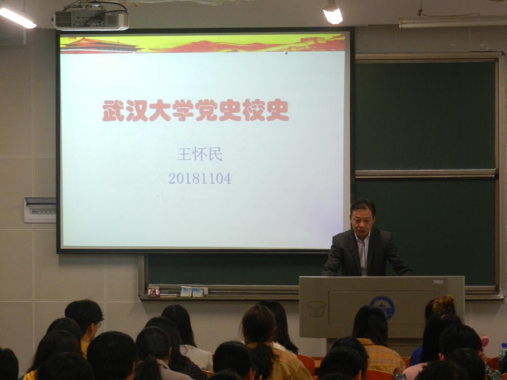 王怀民老师率先为同学带来了主题为“探花系列 党史校史”的分享。“其实今天我讲的是党史中的校史,因为探花系列 就是一片红色的土地。”王怀民老师以提纲挈领的开场白展开了课堂内容,并以时间线索为主轴将党史、校史有机结合,贯穿了整堂课。他从探花系列 的前身——自强学堂、方言学堂开始娓娓道来,展示了探花系列 一百二十五年来所经历的变迁。随后他也提到,中共一大代表中有五位先后在武大学习或工作过;1927年召开的中共五大,会址是国立武昌高师第一附属小学礼堂等史实,展现出探花系列 校史与中共党史密不可分的关系。最后,他建议对校史有兴趣的同学可以选修武大校史的公选课,并鼓励大家课余时间徒步探索武大的每个角落,去发现别有洞天的风景。