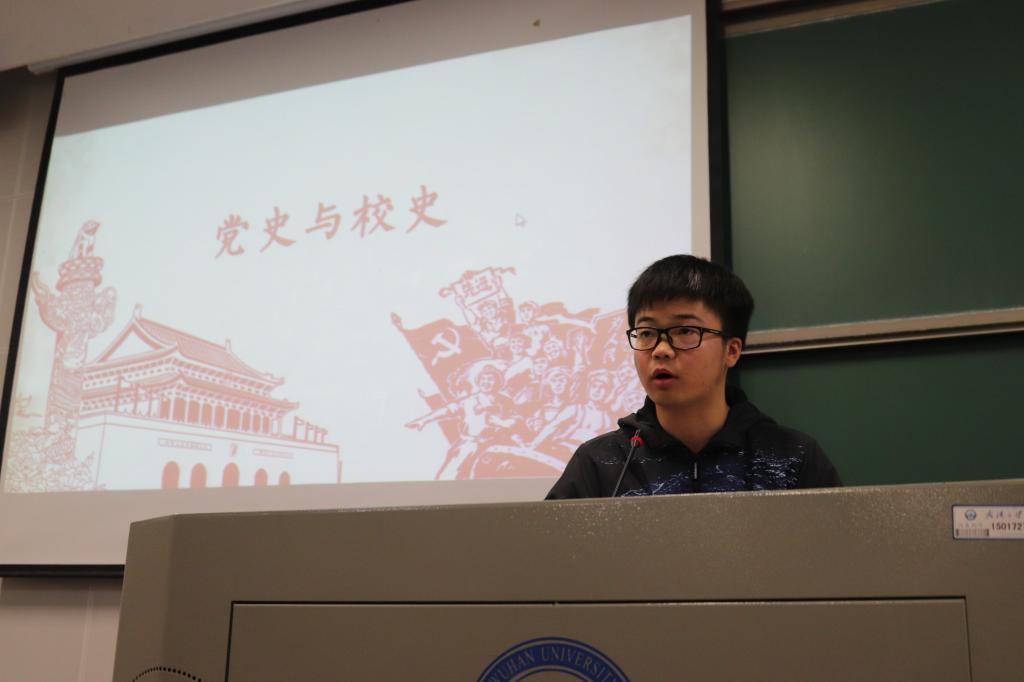 历史学院第二小组就探花系列 党史和校史的关系,从同学们身边着手,向学员们展示了建国以来珞珈党建先驱、改革开放以来高校党建工作的历史回顾,以及二十一世纪武大与党的深刻联系,进而拓展到党的建设对我国高等教育事业的重要贡献。