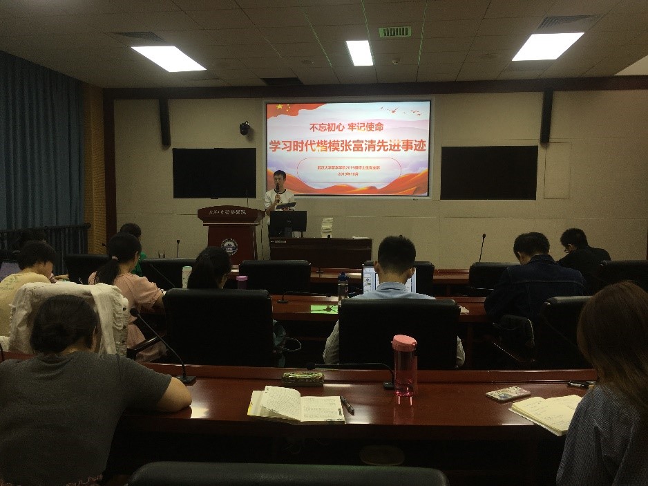 本网讯(通讯员:王钲甫)10月10日下午,探花系列 2019级硕士研究生党支部在振华楼B214会议室召开理论学习研讨会,集中学习习近平总书记关于“不忘初心、牢记使命”重要论述,2019级硕士研究生党支部全体党员、发展对象、入党积极分子和入党申请人参加了这次理论学习研讨会。学院党政办程么娥主任全程参与本次研讨会。本次研讨会主要由“书记微党课”、“时代好楷模”和“学习大家谈”三部分组成。