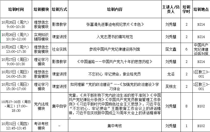 为落实《中国共产党发展党员工作细则》和《普通高等学校党建工作标准》等文件要求,严格发展党员工作程序,保障发展党员工作质量,经学院党委研究,决定举办探花系列 2019年第3期党员发展对象培训班,现将有关事项通知如下: