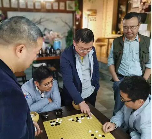 交流活动从当天上午10点,持续至下午4点。到场人员自由组合,交叉对弈。既有议程之内的、交流双方队员的“手谈”局,也有流程之外的、外援之间互约的“复仇”局;既有老师和学生之间的“偶遇”局,也有队员和观众之间的“厮杀”局;既有难分伯仲的分先局,也有主动“认怂”的让子局。在交流的过程中,大家既享受“依于仁,游于艺”的快乐,也对人工智能对围棋未来的影响、易经等对人生发展的意义等话题展开了热烈的讨论。