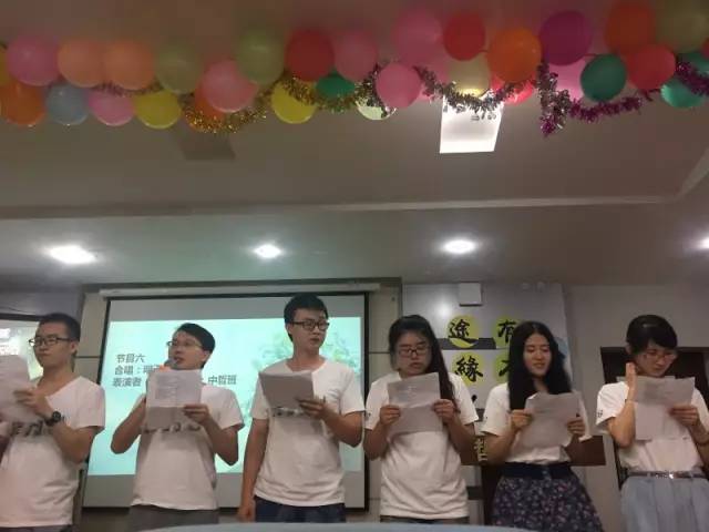 整场晚会内容搞笑温馨,现场气氛热烈,诗朗诵、独唱、合唱和舞蹈,形式多样,穿插的游戏抽奖环节,奖品丰富,更有附有学院老师亲笔签名和毕业寄语的精美礼品。在观看完期许着“常回家看看”的暖场视频,听完了陈祖亮书记送给毕业生的三个故事和三个祝福后,主持人周泽恩和秦蔡思遐宣布晚会正式开始。