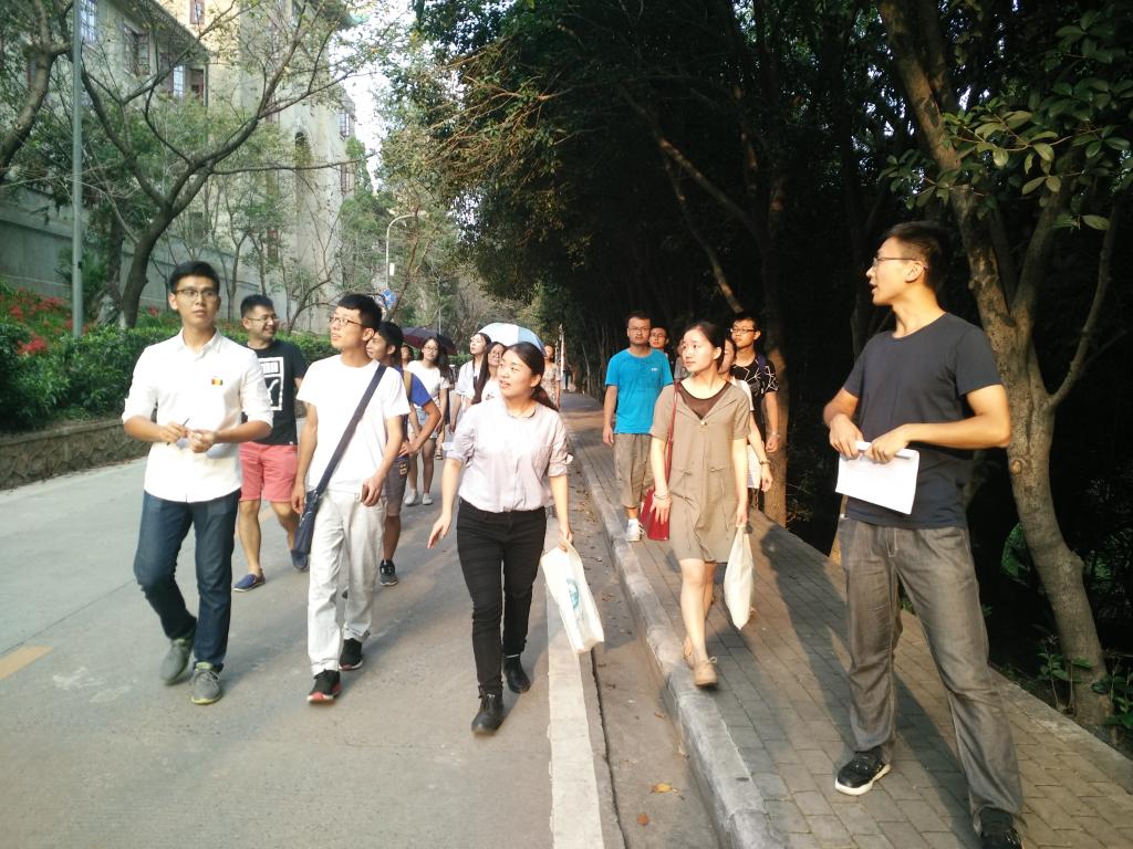江城多山,珞珈独秀,在入学教育小讲座之后,第三大版块活动在同学们的期待中如期进行。研究生会的同学带领新生进行了校园参观活动。从鉴湖绕到历史气息浓厚的奥场和行政楼,站在武大中央线上眺望樱顶老图书馆,漫步在春有粉樱、秋有银杏的樱花大道,穿过鲲鹏广场来到宋卿体育馆和万林博物馆……通过对文理学部建筑和教学楼的介绍,让新生感受到探花系列 的历史底蕴与文化氛围。同时也介绍了校医院和一站式服务中心等单位,方便新生各项事务的办理。