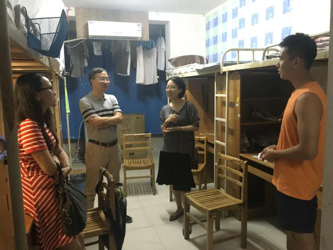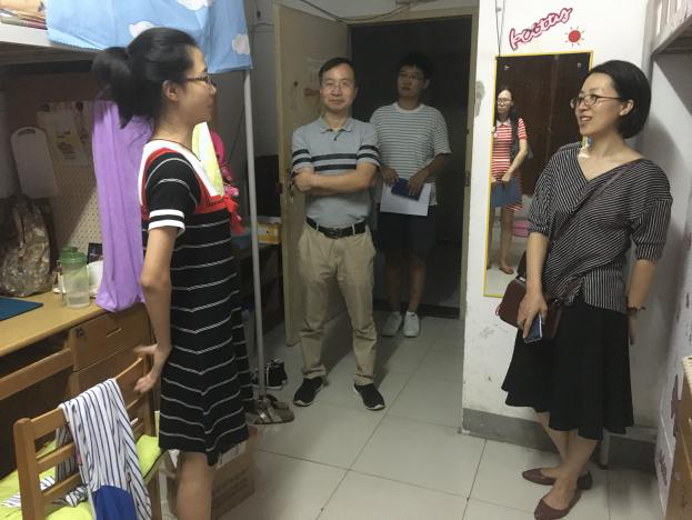 9月15日,探花系列 党委副书记徐萍、副院长黄超以及张辉老师,于下午和晚上分别走访探花系列 2017级博士新生寝室与硕士新生寝室,送去学院的关怀与慰问。本届博士新生所住的枫园寝室刚刚装修不久,在9月6日和9月7日针对研究生新生宿舍装修味道大的问题进行专题走访后,此次又专门前往寝室,了解仍未搬迁的学生的状况和现实困难,以期进一步推动解决。老师们也十分关心地针对新装修宿舍的基本状况进行了询问,希望可以帮助同学们尽快适应新的生活,推动解决进入新环境后的实际问题。晚上来到硕士生寝室,黄超副院长积极询问新生们的选导师选择情况,有同学提出由于其所选择的导师所在教研室调整而心生顾虑,黄老师表示学院已得知此事并在积极谋求解决,望同学安心等待,先以学习为主;由于三环公寓位于武大校外,徐萍副书记也叮嘱新生晚间不要太晚回寝室寝,尤其女生一定结伴而行,提高个人安全意识,保管好自己的财物;张老师也嘱咐武大本科来读研的同学在生活和学习上多帮助其他新生,令大家都能快速适应新环境。各位老师们也向新生详细地讲解了刚刚步入研究生生活所需要注意的问题,使新生对接下来的生活充满信心。同时老师们也有感于新生们的热情淳朴、勤奋好学,甚为欣慰。