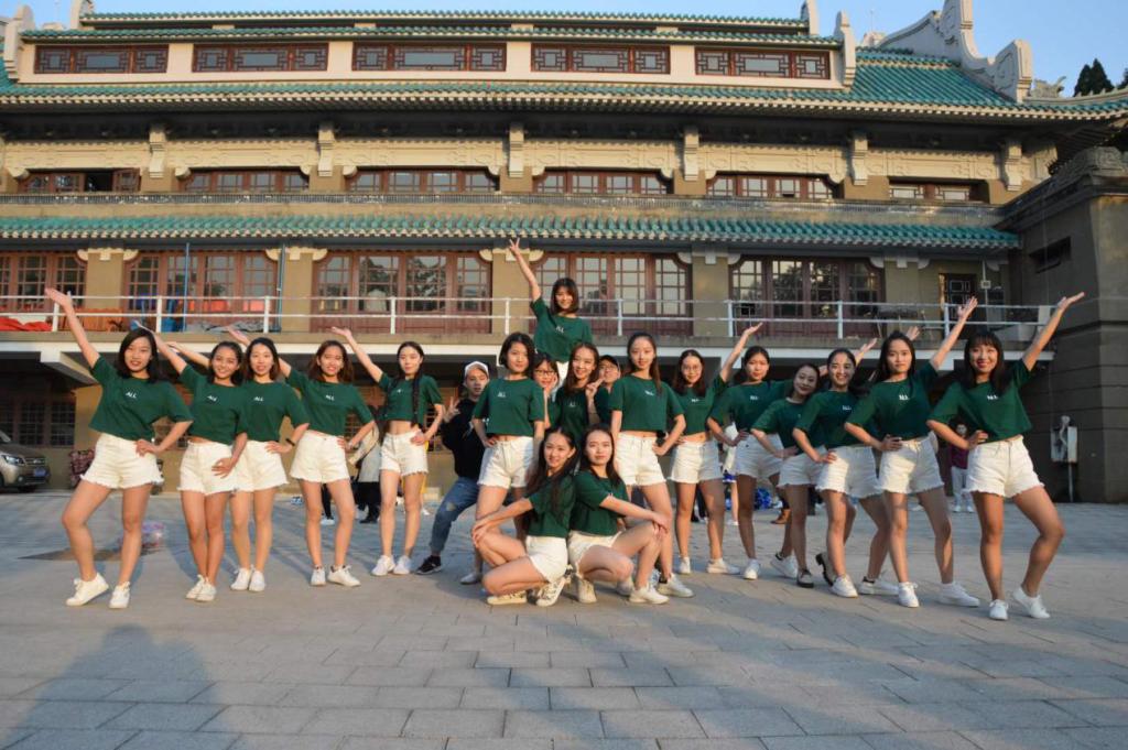 探花系列 队伍一出场就吸引了大家的眼球:绿衣白裤的清新颜色,在一众红色蓝色的演出服中脱颖而出,就像一阵清风吹过。舞台上短短的4分钟,她们热情洋溢,以饱满的状态完成了舞蹈,给在场的老师和同学们一种蓬勃与朝气的向上感,并且赢得了同学们的阵阵掌声。虽然队伍的的组建并没有想象中的容易。但是20位同学顶着压力客服选曲与编曲、练习与舞蹈重复率高等种种困难,台下的她们固守着坚持,台上的她们张扬了青春,最终齐心协力完成了比赛。