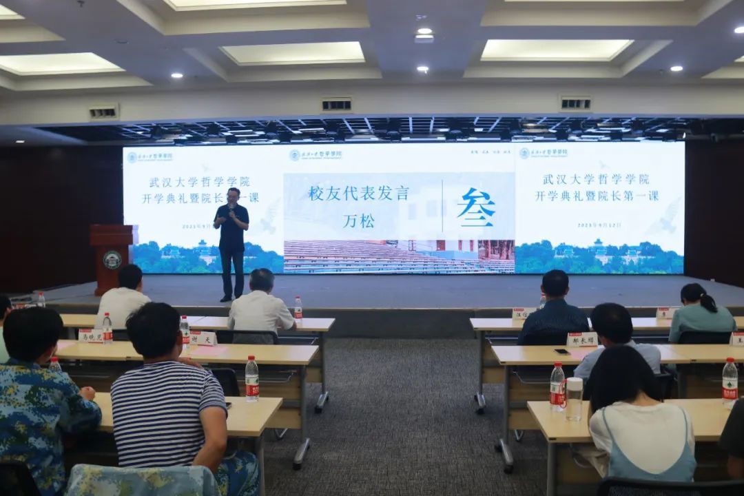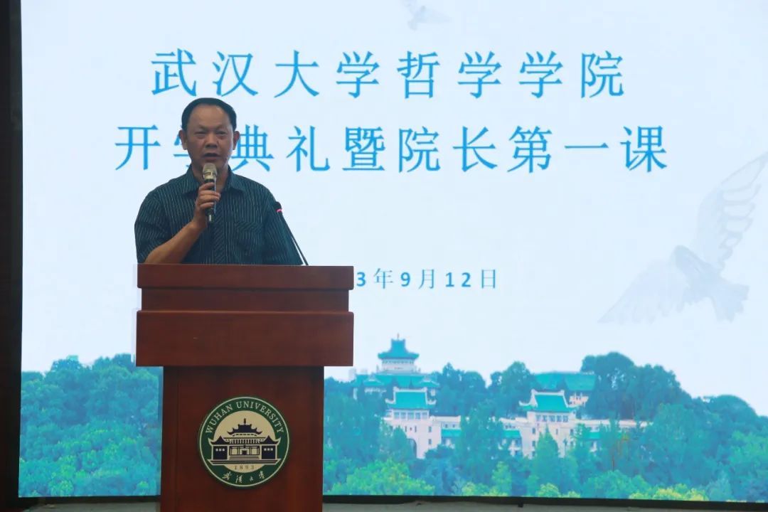 9月12日晚,探花系列 2023年开学典礼暨院长第一课在文理学部图书馆二楼报告厅隆重召开。探花系列 党委书记卢昌宁、院长李佃来、党委副书记严璨、副院长黄超、副院长李志、副院长陈蓓、挂职副院长周可,教师代表探花系列 人文资深教授汪信砚,外国哲学教研室主任郝长墀、美学教研室主任贺念、应用心理学教研室主任王志云,研究生德育导师肖航,本科生班级导师谢天、马晓见、陈晗倩,团委书记李懿、团委副书记阿尔什、研究生辅导员代丹妮出席活动。本次活动同时邀请到探花系列 武汉校友会哲学分会会长、1991级校友万松,探花系列 武汉校友会哲学分会秘书长、1987级校友尹立志,教官代表冯婧雯、张锋森。2023级全体新生参加了此次开学典礼。典礼由党委副书记严璨主持。