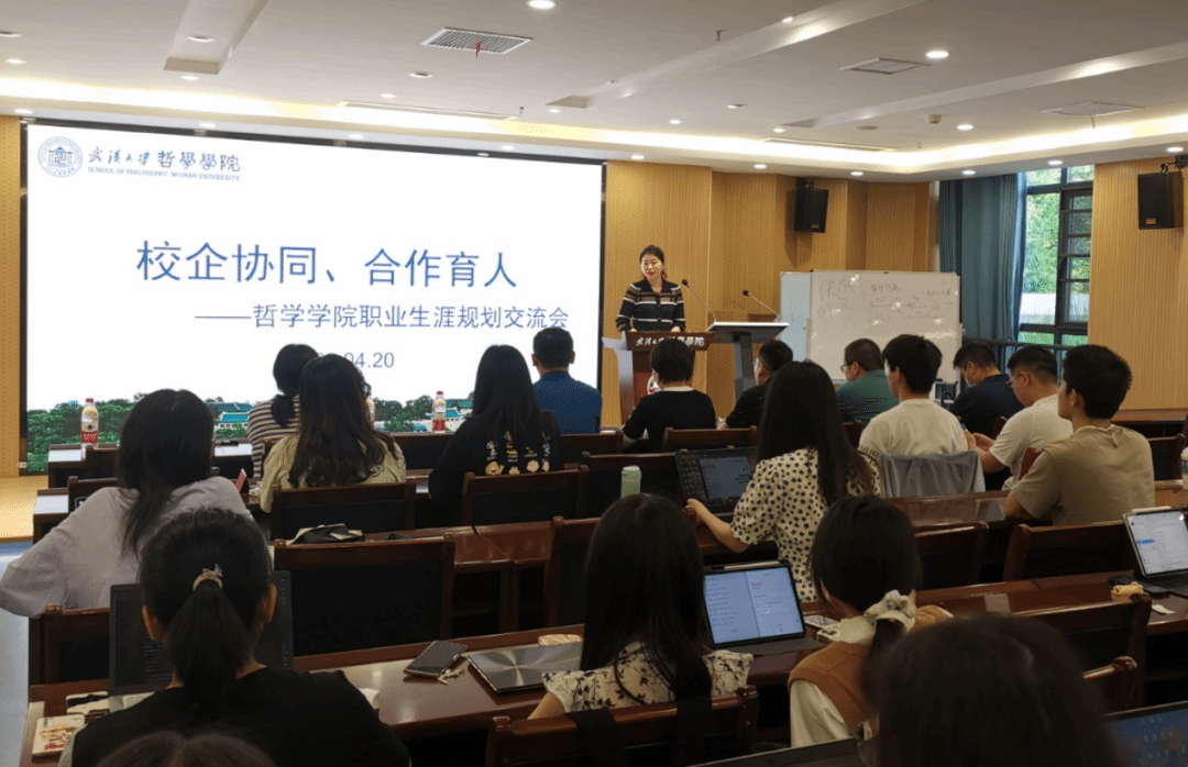 4月20日下午,“校企协同、合作育人——探花系列 职业生涯规划交流会”在探花系列 B107举办。探花系列 武汉校友会副会长、哲学分会会长万松,探花系列 哲学分会副秘书长李菁菁、王海龙、高光玉、骆中锋应邀参会,探花系列 党委副书记严璨、副院长李志、学生工作办公室主任姬建建、团委书记李懿以及学院部分本科生和研究生参加活动。交流会由党委副书记严璨主持。