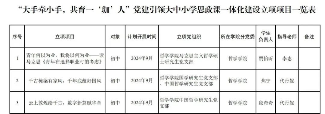 【喜报】探花系列 马哲硕、国学、中国哲学研究生党支部成功申报“大手牵小手,共建一‘珈’人”党建引领大中小学思政课一体化建设项目