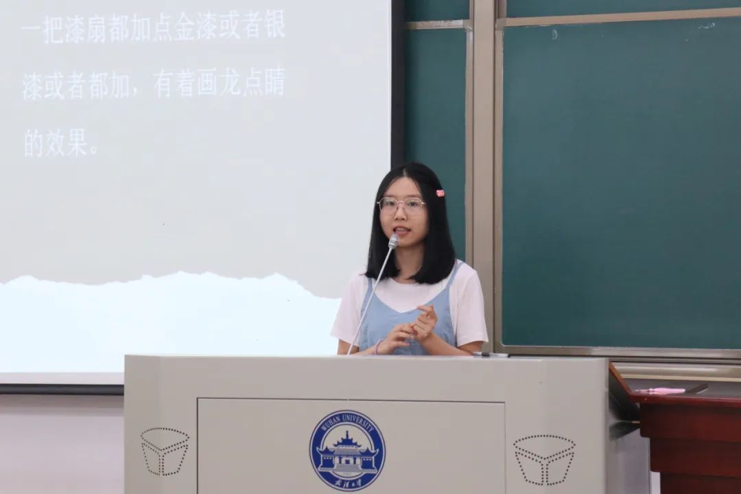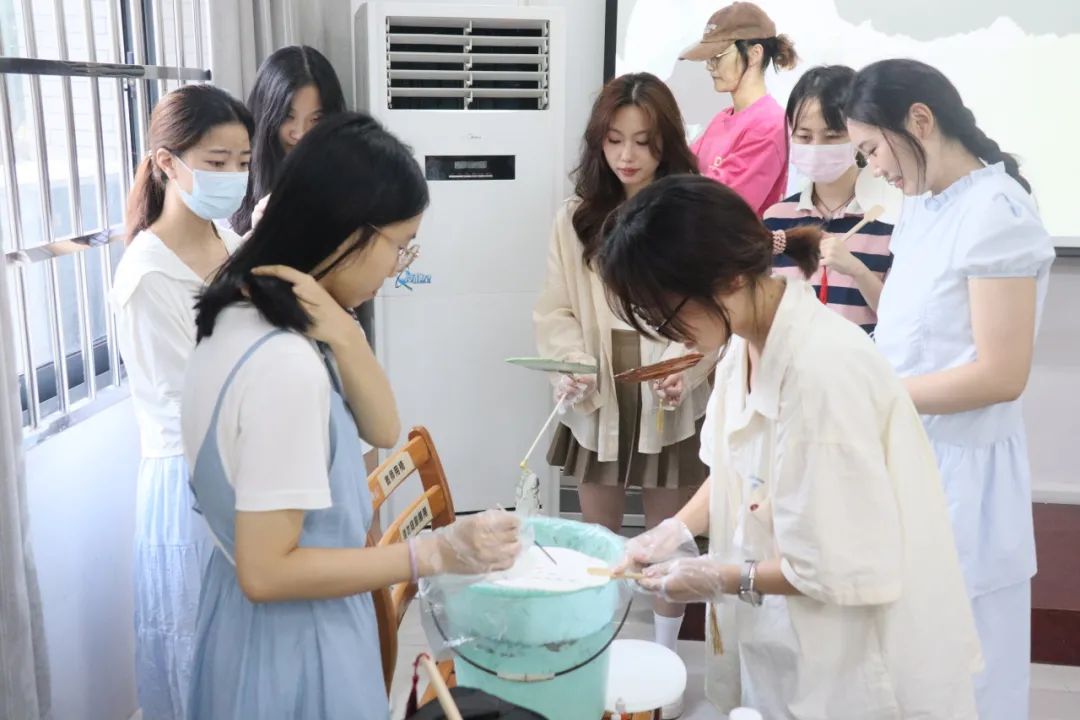 在该活动环节的开始,探花系列 研究生会文体部工作人员详细讲解了漆扇和书签扎染的工艺特征、制作步骤及相应技巧,并借助教学视频帮助同学们初步掌握扎染的基本知识。