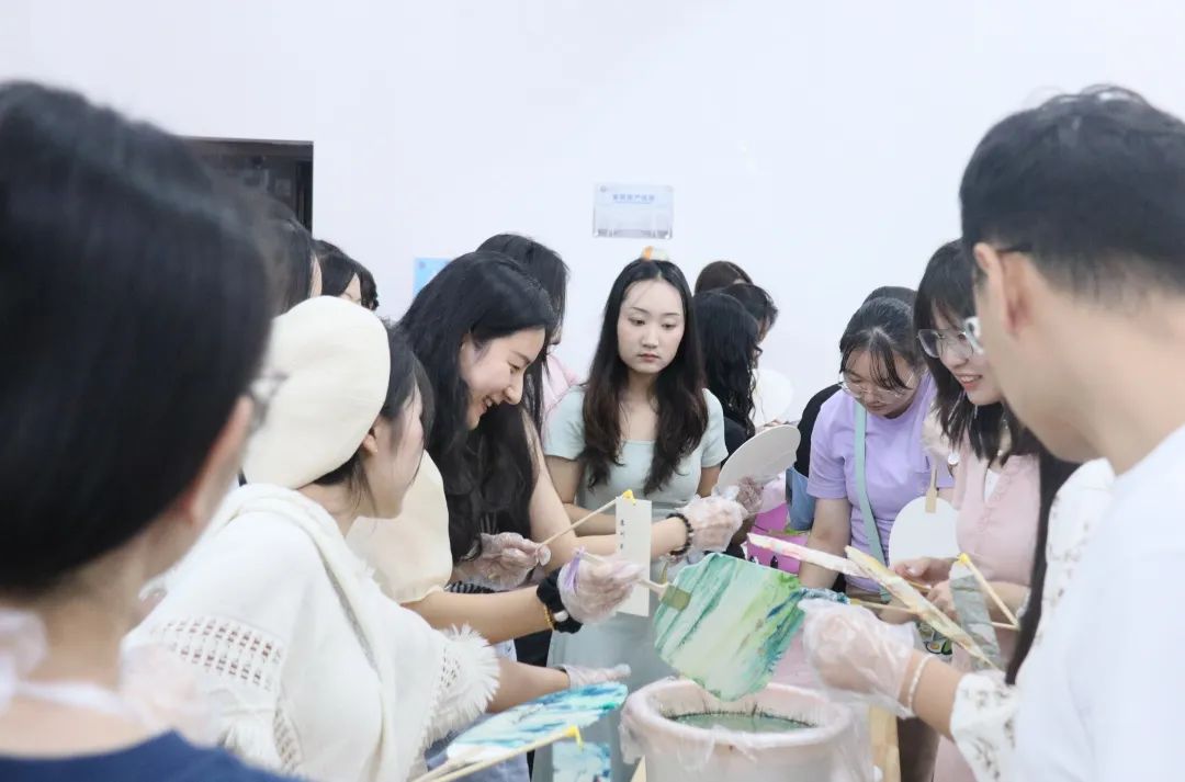 活动的最后,在对彼此的祝福声中,同学们手持制作好的漆扇留下了珍贵的合照。在本次活动中,同学们通过动手动脑的实践活动掌握了新的技艺,深刻感受了传统文化的独特魅力与内涵。在大家的积极参与下,整个活动现场充满了浓厚的节日气氛。