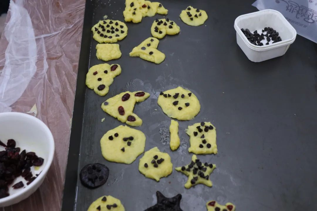 了解基本的制作步骤后,大家纷纷动手尝试,根据自己的兴趣自由选择制作曲奇饼或者布朗尼蛋糕。选择制作曲奇饼的同学们纷纷发挥自己的想象力,将手中的面团变成了各式各样的形状。憨态可掬的小熊、复杂精美的皇冠、诚意满满的爱心,这些充满创意的曲奇饼,不仅让人眼前一亮,更让人期待它们出炉后的美味。