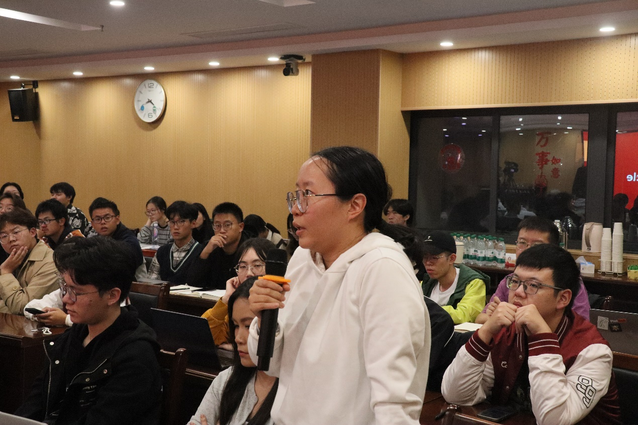 在提问环节,老师们与Singer教授就动物权利的范围、同情与痛苦的理解等多方面进行了交流,Singer教授都给出了自己的回应。同学们也积极参与讨论,提出了关于道德圈层的扩大如何适应当下的社会新问题,如何避免陷入人类中心主义思考,动物权利的扩展范围,展现了高度的学习热情和深入的思考。