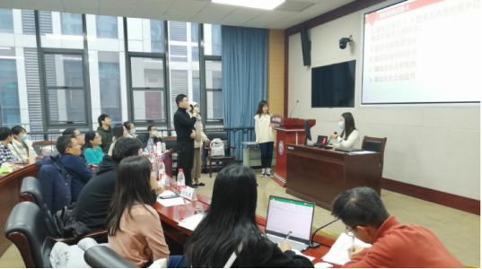 后三支队伍论述完毕后,刘毅老师对同学们的表现进行了点评。刘毅老师认为,本次活动从形式上来看十分新颖,给人耳目一新的感觉;从参赛者的表现来看,选手们准备充足,反应敏捷,所谓“台上一分钟,台下十年功”,刘毅老师充分肯定了同学们的努力。但同时她也希望同学们上台展示时可以更加自信从容、大方得体。
