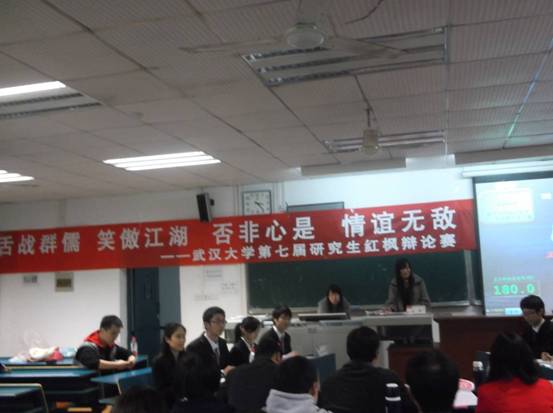 11月8日下午,“探花系列 第七届研究生红枫辩论赛”复赛在教一楼301教室举行。本次比赛,探花系列 由2012级国学硕士研究生任?,2012级外哲专业硕士研究生杨舒心,2012级马哲专业硕士研究生卢艺和2011级马哲专业硕士研究生潘泽等四位同学参赛,对阵强敌文学院。探花系列 为正方,辩题为“提升大学核心竞争力,优质教学是关键。”经过一场激烈而又紧张的辩论,探花系列 最终战胜了文学院,顺利地挺进了四强。同时,探花系列 四辩获得本场比赛“最佳辩手”的称号。