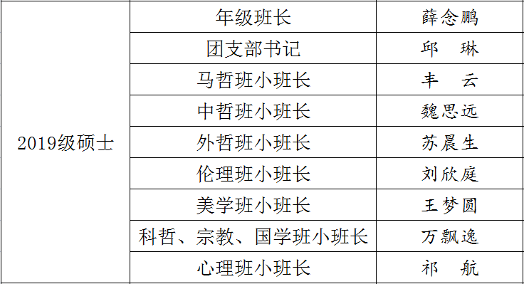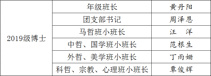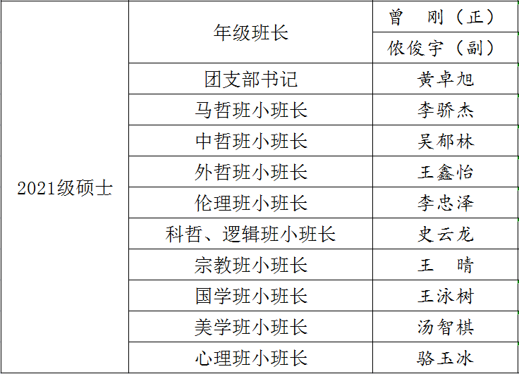 2021-2022学年研究生班长及班委等人员情况