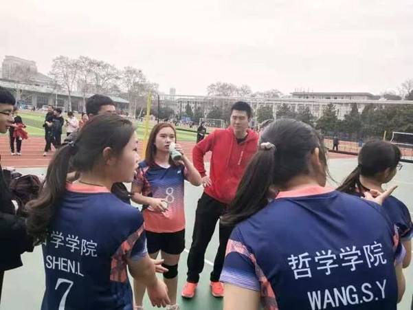 第二场开场前,队长召集了队友进行问题分析和战术安排,并迅速做好状态迎接第二场比赛。场外时不时响起同学们“哲院加油”的呐喊声,加油声也感染了场外其他的观众。