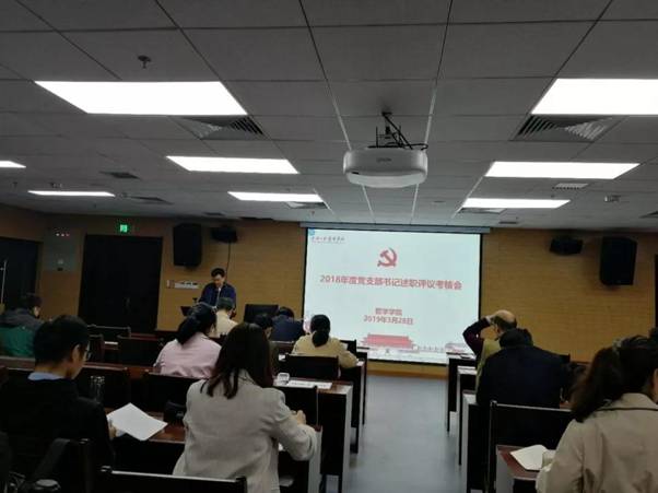 会议伊始,龙滔书记介绍了本次会议的背景、主要内容及对各党支部书记述职考核的评分细则。现场述职中,各支部书记围绕考核内容分别做了6分钟的报告,总结了2018年度本党支部开展的各项工作,着重分析和反思了在工作中出现的问题,并针对这些问题提出了相应的整改措施。
