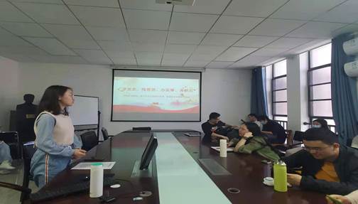 随后,支部书记邹珊带领大家观看了《党史故事一百讲》。欲知大道,必先知史,中国共产党的成立是不容易的,走过的路程更是艰辛的。通过观看视频,支部成员们看到了一幅幅恢弘磅礴的历史画卷,看到了革命家们勇于实践和承担责任的壮志雄心,在党史故事中汲取了前进的力量。
